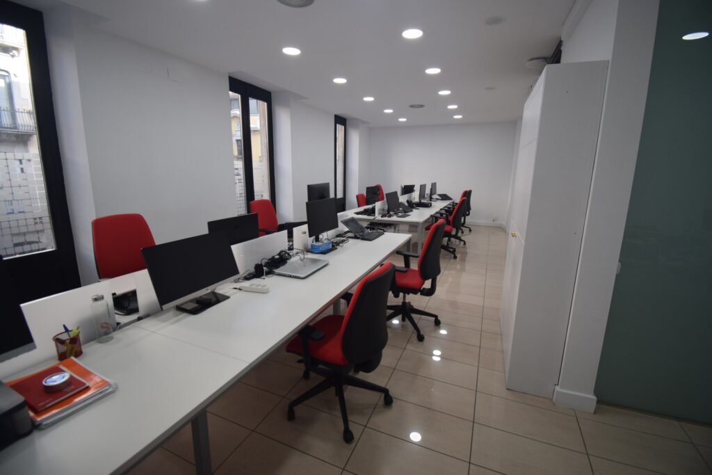 OFICINA EN EL CENTRO DE GIRONA Situada en la emblemática Avenida Sant Francesc, en pleno eje comercial y junto a la Calle Nou, Santa Clara y la Plaza Catalunya, y a solo dos minutos del Barri Vell, esta oficina destaca por su ubicación privilegiada y por sus grandes ventanales, que aportan una excelente luminosidad a todos los espacios. Con una superficie de 287 m², se encuentra en la primera planta de un edificio representativo que conserva el encanto del diseño clásico, combinando carácter, elegancia y funcionalidad, ideal para empresas que buscan imagen y comodidad. El interior dispone de una gran sala diáfana, cuatro despachos independientes, una sala de juntas, una zona office con chimenea que aporta calidez y personalidad, y un baño completo para señores y señoras con ducha. En conjunto, forma un espacio versátil y confortable, pensado para adaptarse a diferentes tipos de actividad profesional. La finca cuenta con ascensor y pocos vecinos, lo que garantiza tranquilidad y un ambiente de trabajo agradable. Se encuentra a pocos metros del edificio de la Generalitat de Catalunya, así como de los Juzgados de Girona y de todo tipo de servicios. La oficina está equipada con calefacción y aire acondicionado, ofreciendo confort durante todo el año. Una oportunidad excepcional para instalar tu negocio en una de las zonas más céntricas y prestigiosas de Girona.